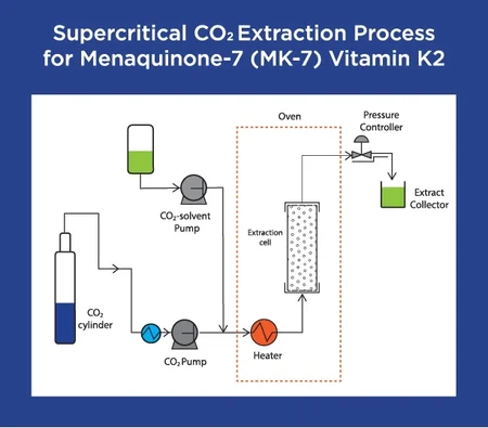 A supercritical CO2 process is also straightforward as the only compound in play is natural CO2. There are no solvents or residual components remaining once the target nutrient is extracted. Why? Because a supercritical fluid can fill a container like a gas while still maintaining its density like a liquid. This supercritical property of CO2 is great for extraction because it is “softer” on the plant than other compounds and won’t cause damage or “denaturing” (making unfit for consumption). This also results in a clean extraction with a natural compound and no chemicals.